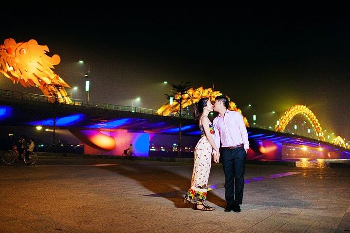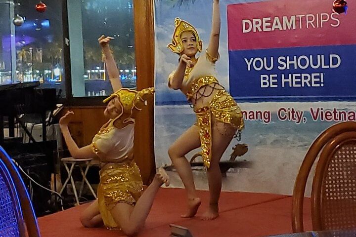 Step into the enchanting nightlife of Da Nang with a private tour that takes you through the city’s most iconic sights. Begin with a hassle-free hotel pickup before heading to the Dragon Bridge, a stunning landmark over the Han River. Next, indulge in a feast of authentic Vietnamese street food at the lively Helio Night Market, where local flavors await. The highlight of your adventure is a serene Han River cruise, where you’ll be mesmerized by the glowing Dragon Bridge and Vietnam’s first rotating Han River Bridge. As you sail along, enjoy a captivating Champa dance performance onboard, adding a cultural touch to your evening. This is not just a tour, but an unforgettable Da Nang night experience that blends culture, cuisine, and scenic beauty.