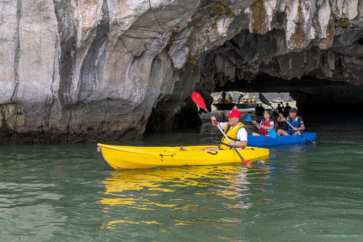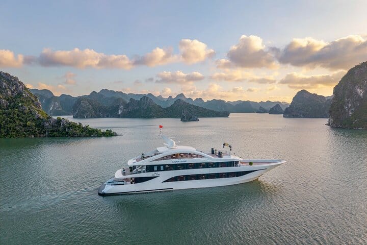 Discover the ultimate Halong Bay day cruise from Hanoi, a luxury one-day tour showcasing the emerald waters and iconic limestone karsts of this UNESCO World Heritage Site. Enjoy convenient pick-up from Hanoi Old Quarter, explore stunning Sung Sot Cave and the tranquil Luon Cave with kayaking or bamboo boat rides, and relax on Ti Top Island with swimming, sunbathing, or panoramic views. Savor a delicious Vietnamese lunch on board, unwind on the sundeck or mini pool, and finish the day with a sunset party while passing iconic islets. Perfect for travelers seeking a luxury Halong Bay tour combining sightseeing, adventure, swimming, and relaxation all in one unforgettable day.