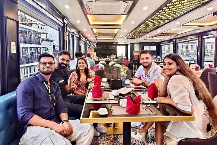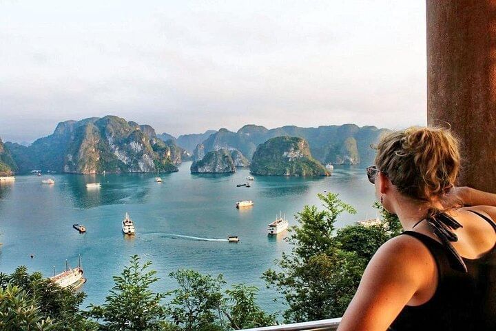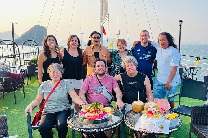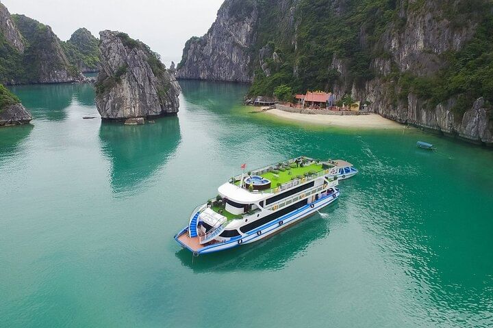 Enjoy a luxury 5-star Halong Bay day cruise with roundtrip limousine transfer from Hanoi via expressway. Explore the heart of this UNESCO World Heritage site, marvel at thousands of limestone islands, and savor a delicious Vietnamese buffet on board. Discover the spectacular Sung Sot Cave, kayak or ride a bamboo boat at Luon Cave, and climb Titop Island for breathtaking panoramic views. Join fun onboard activities including outdoor Jacuzzi, sunset party, and relax while admiring the stunning Halong Bay sunset.