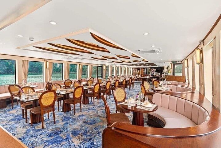 Halong Bay is renowned for its emerald waters, towering limestone karsts, and unique rock formations, all recognized as a UNESCO World Heritage site. A Halong Bay Luxury Day Cruise offers an opulent and immersive way to experience this breathtaking natural wonder, featuring activities such as kayaking, swimming, hiking, and cave exploration. Swimming in Halong Bay provides a refreshing and invigorating experience amidst its stunning natural backdrop. Ti Top Island boasts a sandy beach perfect for swimming and a hike to a viewpoint with panoramic views of Halong Bay, catering to both relaxation and adventure enthusiasts. Sung Sot Cave, famous for its vast chambers and magnificent stalactite and stalagmite formations, promises a captivating exploration of Halong Bay's natural wonders.
