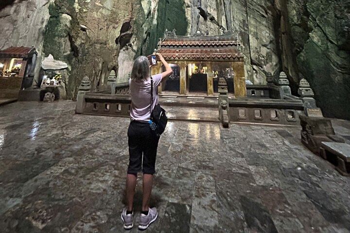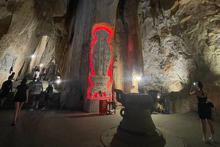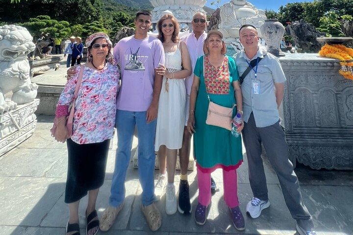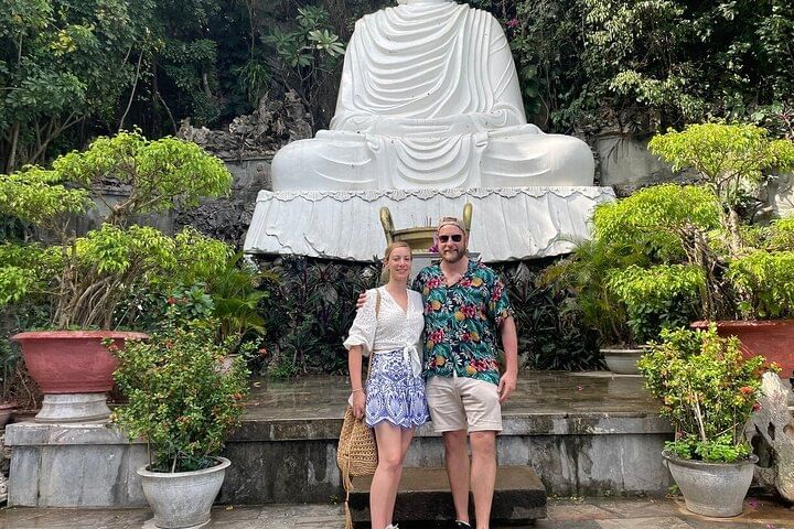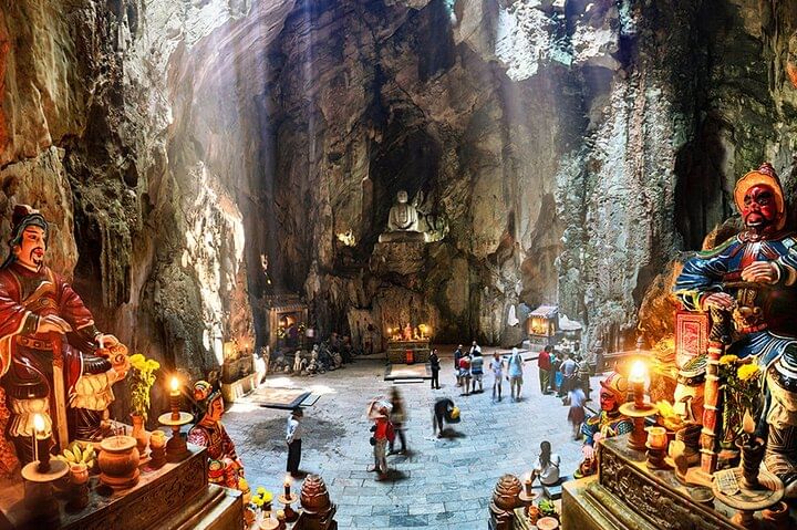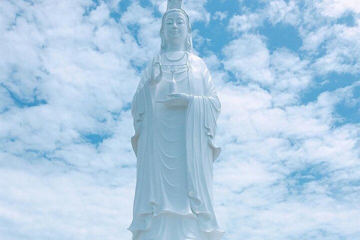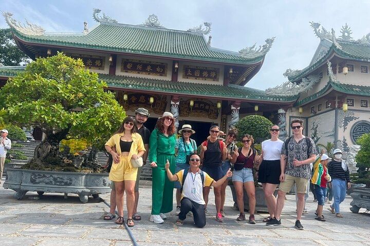 Embark on a luxury small group tour combining the best of Da Nang and Hoi An with convenient hotel pickup. Begin at Monkey Mountain to admire the towering Lady Buddha statue and stroll through the peaceful bonsai garden. Next, explore the Marble Mountains, famous for exquisite stone sculptures and 19th-century pagodas. Ascend to the summit via elevator option to visit the mystical Huyền Không and Tàng Chơn Caves, then discover the impressive Âm Phủ Cave, rich in natural beauty and Buddhist heritage. After enjoying an authentic Vietnamese lunch, return to your hotel in Hoi An or Da Nang, concluding a day of cultural and natural wonders.