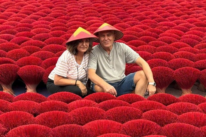 Start at the vibrant incense village of Quang Phu Cau—one of northern Vietnam’s most photogenic craft villages—where colorful incense bundles create striking scenes. Continue to Tam Coc, often called “Ha Long Bay on land,” and enjoy a scenic boat ride through limestone karsts and peaceful waterways. Conclude your experience with a visit to Hoa Lu, Vietnam’s ancient capital, rich in history and cultural heritage.